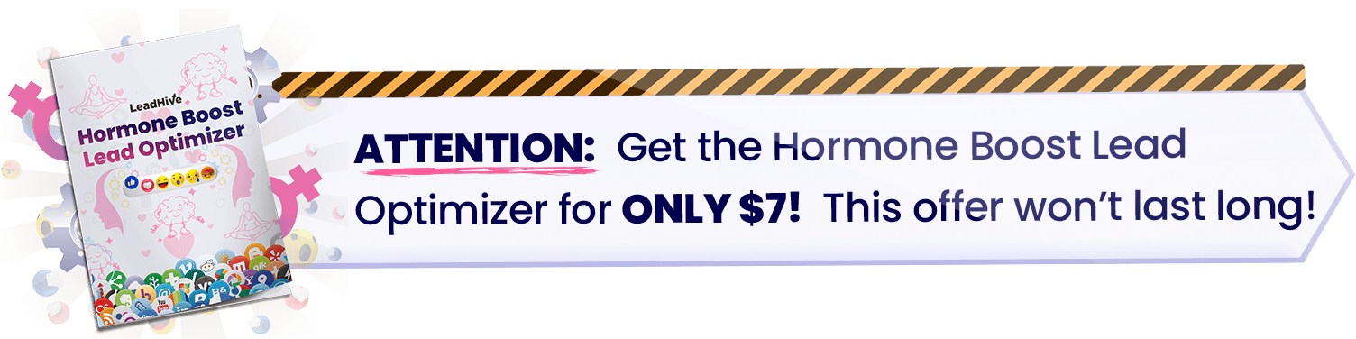 The Hormone Boost Lead Optimizer is an interactive blueprint that shows you how to "transform" your social media profiles to get more leads and customers to grow your business.....                              TODAY!